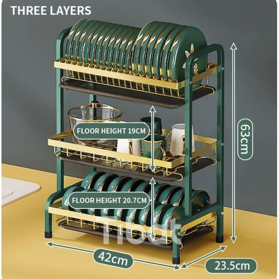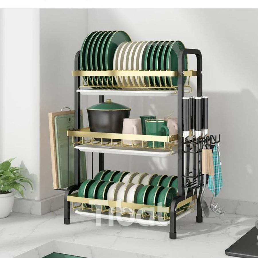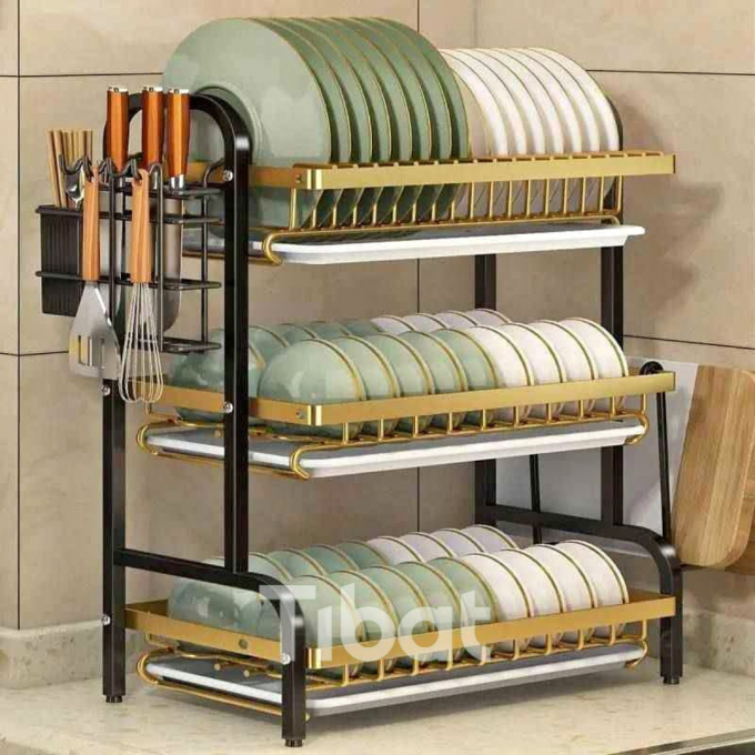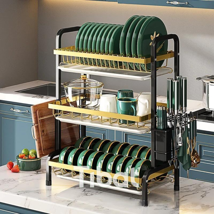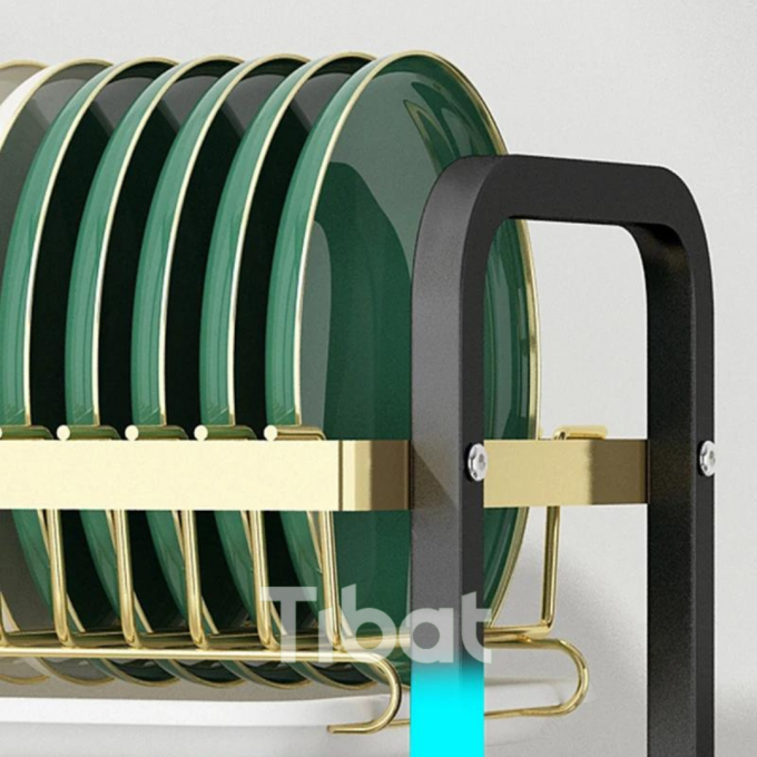 رف تجفيف اطباق كبير مع لوح تصريفمصفاة مضادة للصدا لاسطح المطبخاللون: دهبيالمقاس: 44 × 30 × 62