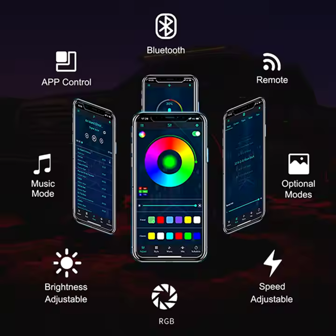 إضاءة ليد داخلية للسيارة مع تطبيق للتحكمطول الشريط 5متراختر بين ملايين الألوانالتحكم عبر التطبيق تغيير الألوان والأوضاع بسهولة من هاتفك أوضاع مختلفة للإضاءة اضبط الإضاءة للعمل كما تحب