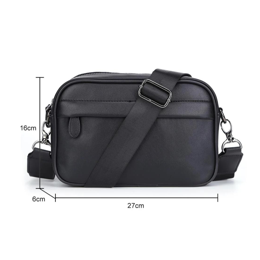 مميزات ومواصفات الشنطة:المادة: جلد عالي الجودةالأبعاد: 27 سم طول × 16 سم عرض × 6 سم عمقالألوان: أسود كلاسيكيالتصميم: كروس عصري وأنيقالسعة: مساحة كافية للمستلزمات اليوميةالأشرطة: قابلة للتعديل لراحة أكبرالجيوب: جيب خارجي لسهولة الوصول للعناصر الأساسيةالاستخدام: مناسب للعمل، الجامعة، والخروجات اليومية