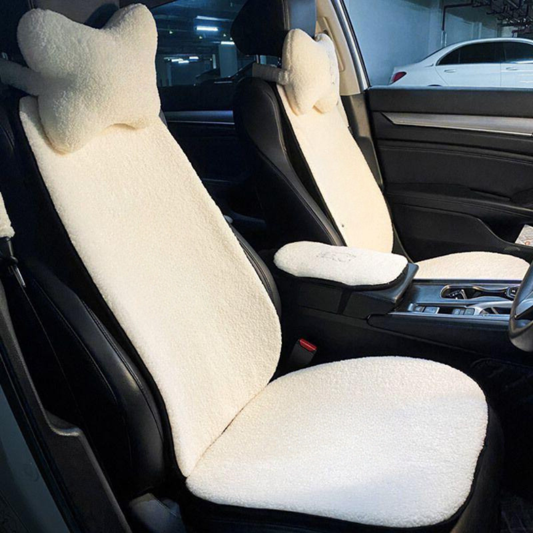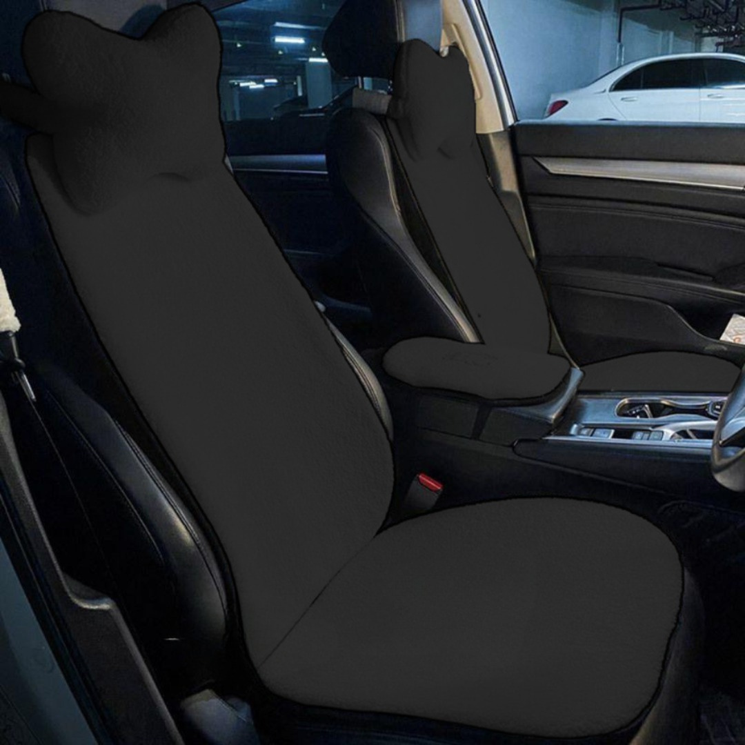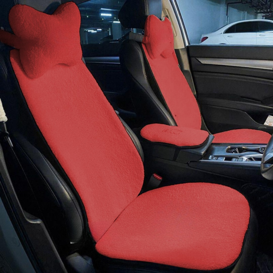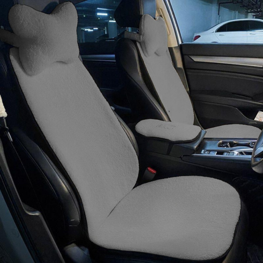 طقم فرو مستورد 5 قطع: يشمل 2 غطاء كرسي، 2 مخدة، وغطاء للمسند بين الكرسيين.خامة فرو ناعمة.متاح بـ 4 ألوان (أسود، رمادي، أحمر، أوف وايت).تصميم يعزز من شياكة سيارتك.سهل التركيب والتنظيف.