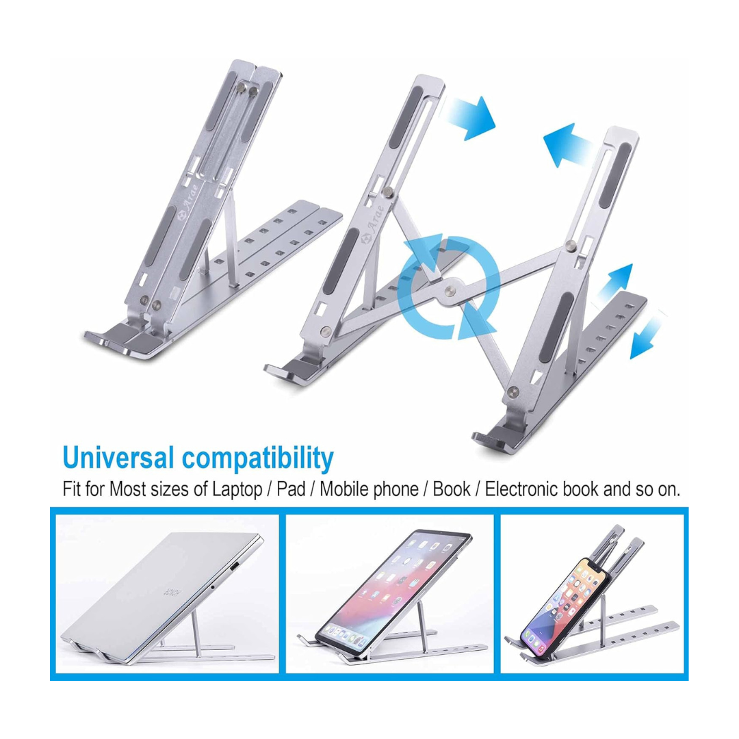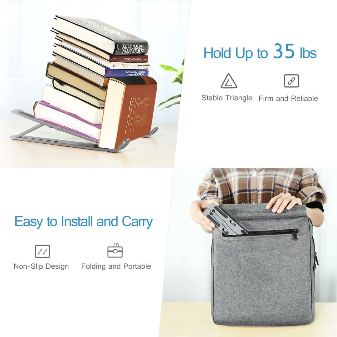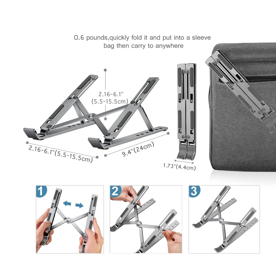 المميزات:7 زوايا توجيه سهلة التعديل: اضبط الارتفاع على مستوى راحتك للحد من آلام الرقبة والكتف والظهر.توافق واسع: متوافق مع الأجهزة من 9 إلى 15.6 بوصة ويمكن استخدامه أيضًا كحامل للموبايل.خامة عالية الجودة: مصنوع من خليط معدني من الألومنيوم القوي، يمكنه دعم اللاب توب بوزن يصل إلى 20 كجم. ومقاوم للصدأ.مضاد للانزلاق وتبريد الحرارة: التبطين المطاطي يمنع الانزلاق ويحافظ على ثبات الجهاز، ويساعد على تسريع تبريد الحرارة بشكل أكثر فعالية.قابل للطي وخفيف الوزن: وزنه 245 جرام فقط، ويمكن طيه إلى حجم صغير (10 × 1.77 × 0.8 بوصة)، مما يجعله سهل الحمل مع الشنطة المرفقة.