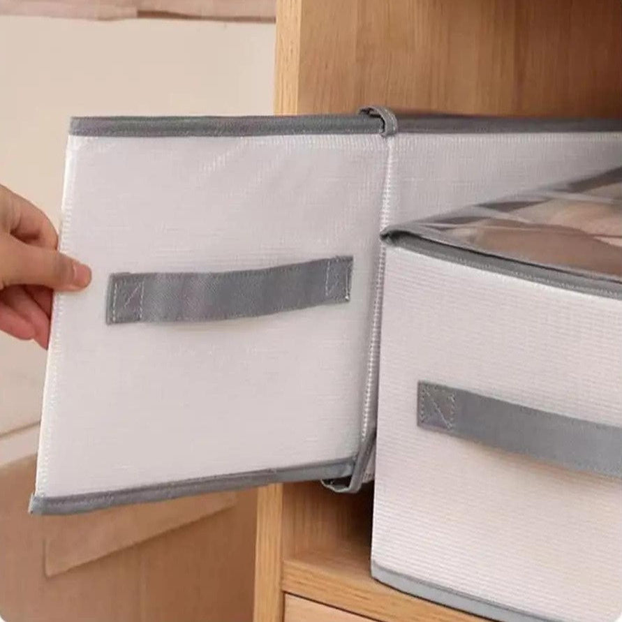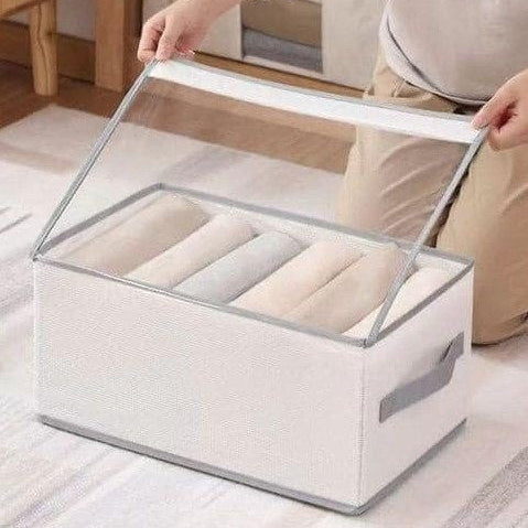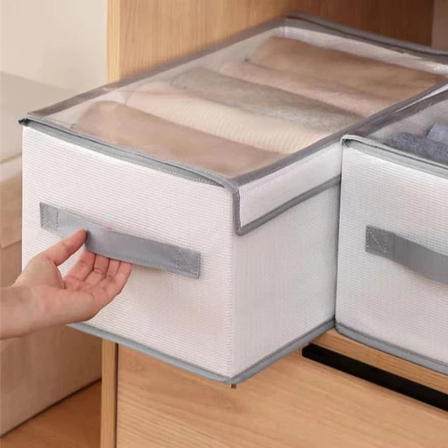 المنظم ده معمول من قماش الأكسفورد الأصلي، ومن جوه واسع ومتقسم 9 خانات. ده غير إنه متبطّن بكرتون مقوى، يعني هتلاقيه ماسك نفسه وناشف عكس أي منتجات تانية مش متبطّنة.البوكس ده مثالي عشان ترصي فيه هدومك، الفوط، البراهات، والبناطيل، وهيوفرلك مساحة تحفة وشكل شيك في بيتك ودولابك. وكمان متصمم بغطاء شفاف عشان يحمي هدومك من التراب. المنظم ده بيوفر مساحة كبيرة بجد، ممكن تستخدميه لو هترصي حاجاتك في الأدراج، الدواليب، تحت السراير، وده هيخلي بيتك متّرتب ومنظم على طول.