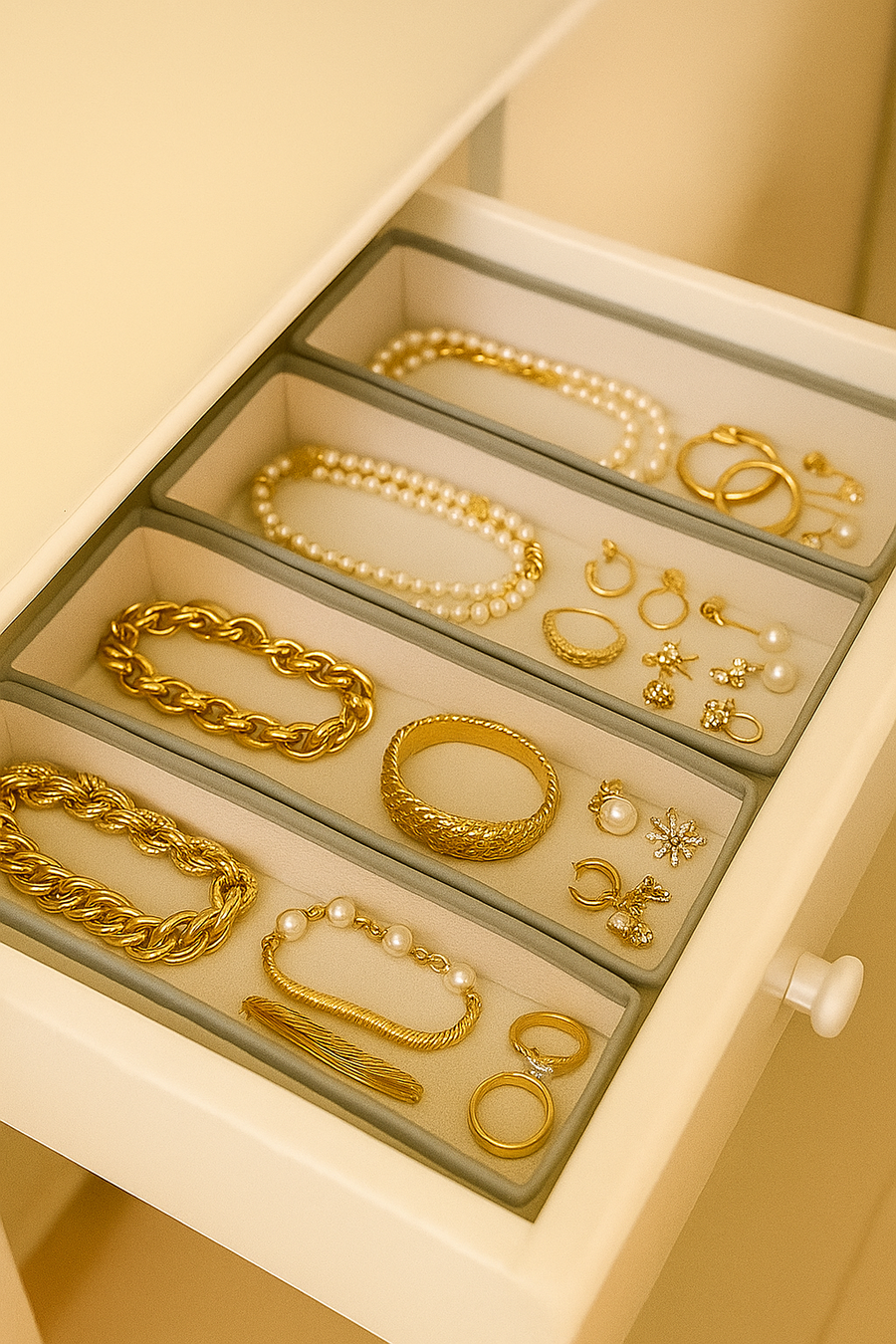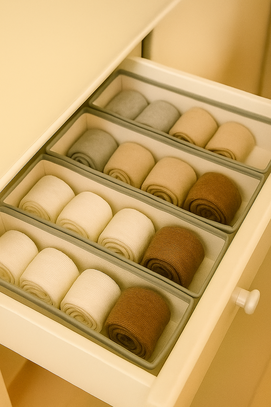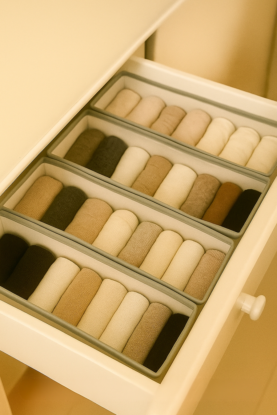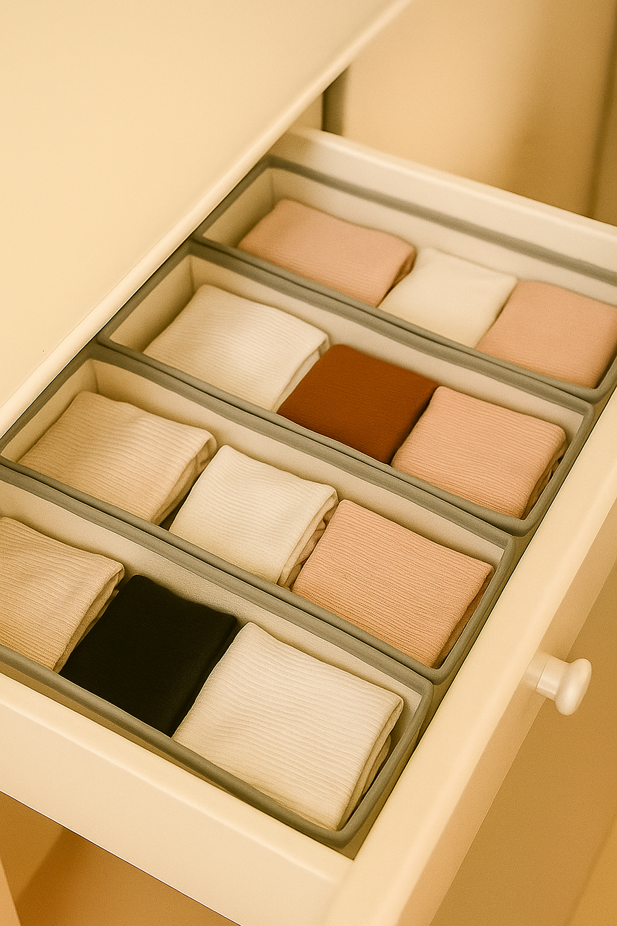 طقم منظم الأدراج هيخلصك من الفوضى ويخلي كل حاجة في مكانها 🪄 ليه تختاري الطقم ده من Baraa؟✅ تنظيم متكامل: أحجام مختلفة تنظم الجوارب، الكرافتات، الإيشاربات، الطرح وغيرهم.✅ جودة عالية: خامات متينة تدوم معاك لفترة طويلة.✅ سهولة الاستخدام: سهل التركيب والتنظيف.✅ توفير مساحة: هيخلي أدراجك متظبطة ومنظمة من غير مجهود.